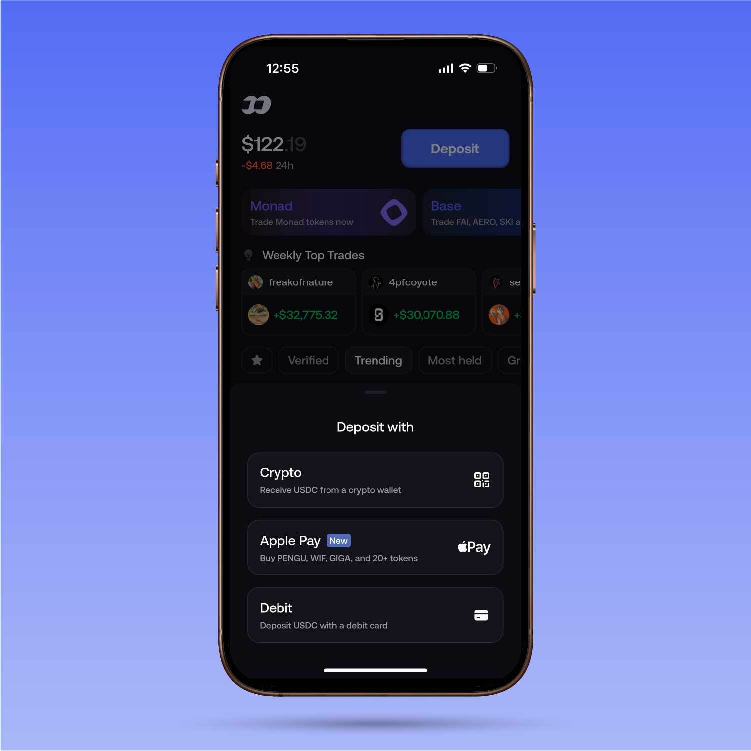Once you're ready to buy, click the button at the bottom. You can either buy directly through Apple Pay (for select tokens only) or use the funds you deposited into your account.